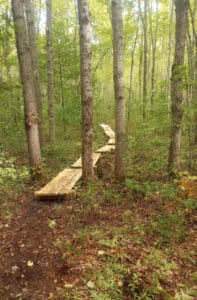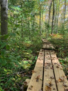 Dedicated volunteers hiked through the woods to design trail routes. Students, neighbors, and businesses joined together to haul lumber, cut materials, construct bridges, rake paths, and dig signposts-building the preserve piece by piece. Today, this collective effort has created two miles of woodland and wetland trails, now open to the public within 50-acres of protected forest habitat.